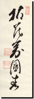 この「拈花萬国春」語は臨済録の「寒松一色 千年別なり 野老花を拈ず 萬国の春」の語の一節である。字義通りに解釈すれば、松樹千年の翠というごとく、風雪に耐え抜き千年もの長き歳月を経ながらも翠を見事に輝かせる老松のそばで、これまた老松にも負けない老僧と言うべきか、一人の老翁が花の一枝を手折りて「ああ、今年もまた春に巡り逢えた」とばかり、春景色を楽しんでいる、まことに天下泰平、春ののどかな光景をあらわした語である。だが、これは禅の言葉としてはただ、自然の風光、のどかさとか天下泰平の世上でいうような平和と言うことでなく、自らの境地における心の平安、安心が得られて一点の煩悩の炎も燃えなくなった心の世界を表した語であると解釈されるべきである。