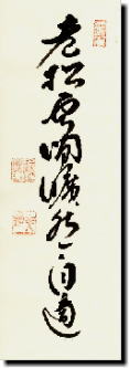 松寿千年の翠〈みどり〉と言う句もあるが、老松は泰然自若、悠然としていつまでもそのみどりを保ち続けている。そしてまた流れる雲は静かにして時の経過、世のわずらわしさも忘れたるごとく超越して生きる悠々自適の心境を表す語である。ここにはもはや、煩悩妄想の湧く要素もなく、また悟りを感じさせる臭みを払拭ししきった妙境涯があるだけである。