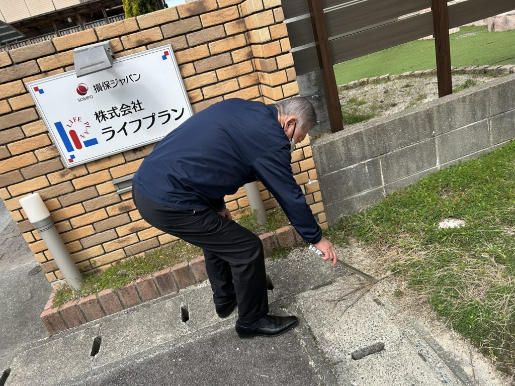 ライフプランニュース 公開済み: 2025-03-14更新: 2025-03-14作成者: lifeplanカテゴリー: Uncategorized, お知らせ&トピックス 皆さま、こんにちは!! ライフプランです。 今日は定期的に事務所周りの清掃活動をしている様子を ご紹介させてもらいます。 毎回思う事ですが、草の生えるのは本当に早いですね。 きれいな花を咲かせている草は次回、とる事にします。 すっかり春の陽気で気持ちのいい反面、花粉症でくしゃみ連発の メンバーなのでした。。。 関連記事 16 年末年始のお知らせ 日頃より大変お世話になっております。 誠に勝手ながら、下記の期間は年末年始営業休業とさせていただきますので、 ご案内申し上げます。 ※尚、休業中も事故の場合は、24時間対応しておりますのでご連絡ください。 <休業期間> […] 公開済み: 2025-12-16更新: 2025-12-16作成者: lifeplanカテゴリー: Uncategorized, お知らせ&トピックス 23 年末年始の営業ご案内 日頃より大変お世話になっております。 誠に勝手ながら、下記の期間は年末年始営業休業とさせていただきますので、 ご案内申し上げます。 ※尚、休業中も事故の場合は、24時間対応しておりますのでご連絡ください。 <休業期間> […] 公開済み: 2022-12-23更新: 2022-12-23作成者: fukudaカテゴリー: Uncategorized, お知らせ&トピックス 23 SOMPOひまわり生命株式会社2022年度上半期エクセレントプランナー認定 日頃より大変お世話になっております。 この度、弊社代表の眞弓祐太がSOMPOひまわり生命株式会社の2022年度上半期エクセレントプランナーに入賞しました。これで17回目の入賞となります。これもひとえに、お客様あってのこと […] 公開済み: 2022-12-23更新: 2022-12-23作成者: fukudaカテゴリー: Uncategorized, お知らせ&トピックス